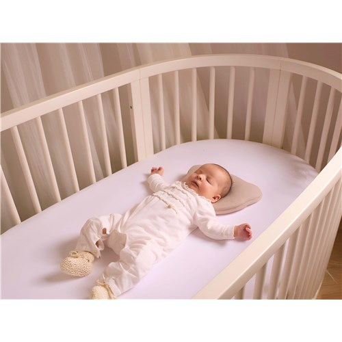 Specjalne wyprofilowanie z centralnym zagłębieniem stabilizuje główkę i zapewnia jej odpowiednie ułożenie podczas leżenia na plecach. To rozwiązanie szczególnie istotne w pierwszym etapie życia dziecka, kiedy większość czasu spędza ono w pozycji leżącej.