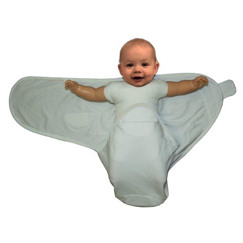3.Zegnij prawą stronę koca nad dzieckiem i zamknąć zapięcie na rzep. Ułóż tak, aby dobrze pasowało wokół klatki piersiowej dziecka.