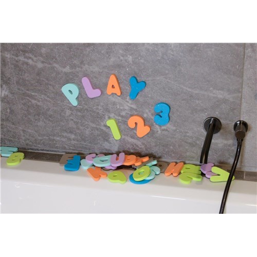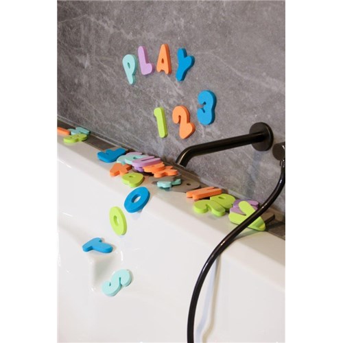 Zestaw 36 różnych literek i cyferek do kąpieli w różnych kształtach i kolorach, aby pobudzić wyobraźnię dziecka i uczynić bardziej przyjemny czas kąpieli. Zabawki nie wchłaniają wody, są lekkie i niewielkich rozmiarów, tak aby pasować do rączek dziecka. Zabawki stymulują rozwój oraz umiejętności manualne u dziecka. Radość sprawia to, że z łatwością przyklejają się się do płytek w łazience nad wanną czy w kabinie prysznicowej. Kąpiel z nimi staje się zabawą! Piankowe figurki są bezpieczne, wolne od BPA i można je myć w zmywarce, zapakowane w przeźroczystą torbę na zamek.