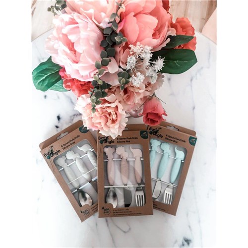 Ładny zestaw sztućców dla dzieci to komplet składający się z łyżki, widelca i noża. Sztućce wykonane są z wysokiej jakości materiału, ze stali nierdzewnej Inox i silikonu.