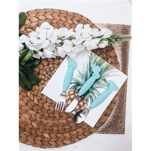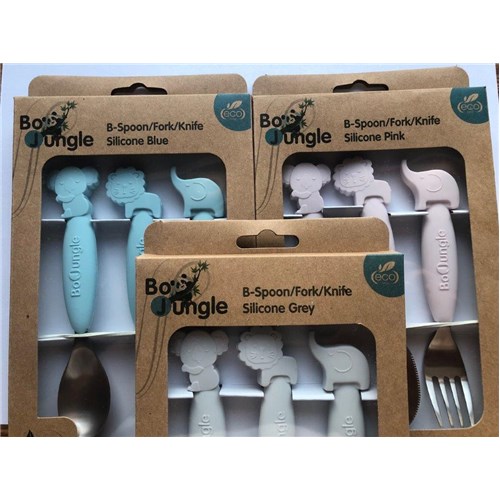 B-Zestaw sztućców dla dzieci silkon/Inox blue