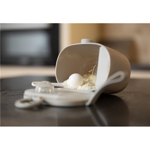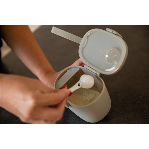 Pojemnik ma pojemność 500 ml, posiada podwójne, hermetyczne zamknięcie. Wyposażony jest w wygodną łyżkę/miarkę do mleka.