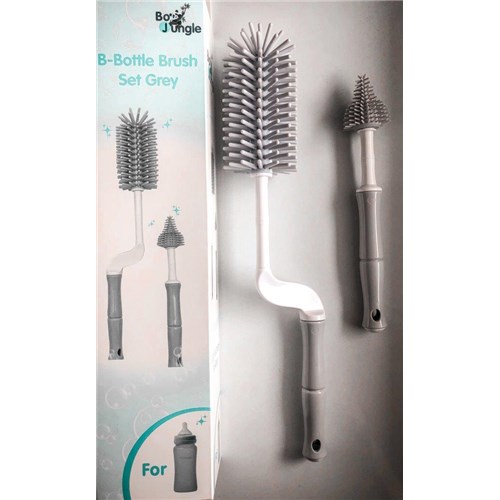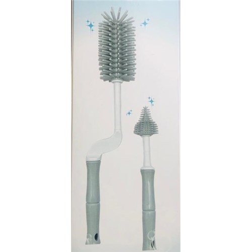 Uniwersalny zestaw silikonowych szczoteczek do mycia butelek i smoczków BO JUNGLE sprawdzi się idealnie w kuchni każdej mamy maluszka. W zestawie duża szczotka do butelek i mała – specjalna do mycia smoczków. Szczotka do butelek jest obrotowa, ma wydłużony, ergonomiczny kształt z ugiętą rączką co ułatwia dokładne czyszczenie butelek i innych pojemników. Natomiast mała szczotka jest wyprofilowana, z wypustkami nadaje się idealnie do czyszczenia smoczków, mniejszych akcesoriów i wszelkich zakamarków. Wygodę użytkowania gwarantuje rączka/uchwyt z otworem do zawieszania szczotek w kuchni. Szczotki są łatwe do utrzymania w czystości, należy ją myć ręcznie.
