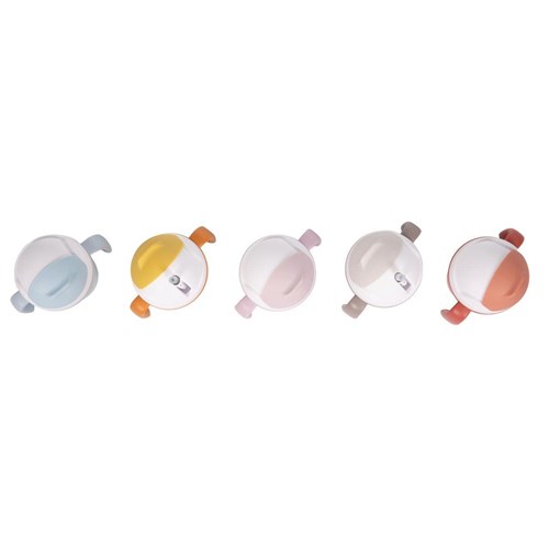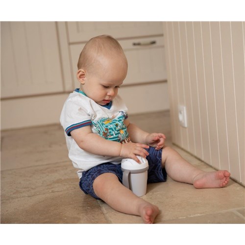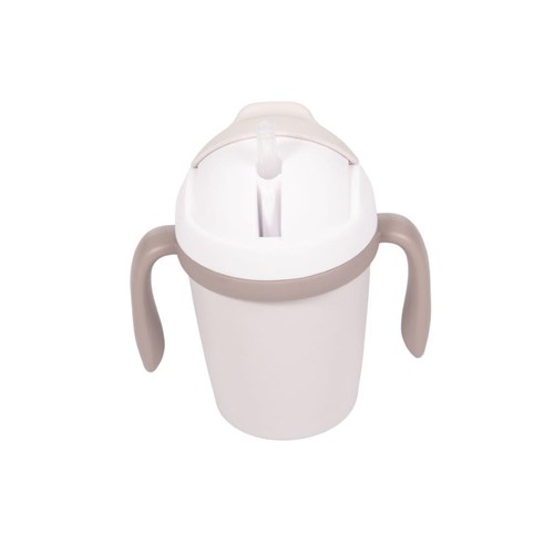 Kubek treningowy ma pojemność 250 ml. Jest to kubek do nauki samodzielnego picia z miękką silikonową słomką i systemem niekapiącym. Słomka jest całkowicie zdejmowana dla łatwego czyszczenia i zachowania idealnej higieny. Po przekręceniu górnej części kubka pokrywka zakrywa słomkę, blokuje się i jest szczelna. Dwa uchwyty na bokach sprawiają, że kubek jest łatwy do przenoszenia i utrzymania w małych rączkach.