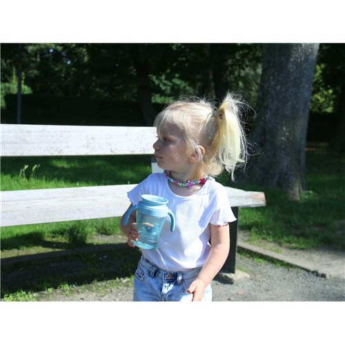 Uroczy i innowacyjny kubek treningowy 360° do nauki picia o pojemności 250 ml, który w zabawny sposób nauczy i zapewni przejście na samodzielne picie z otwartego kubka. Silikonowa krawędź zapewnia, że napój wypływa z kubka tylko wtedy, gdy maluch wykonuje ruch ssania i picia. Przezroczysta pokrywka sprawia, że dziecko widzi napój i może oceniać kąt nachylenia kubka. Z tym kubkiem nic się samo nie wyleje! Kubek z małym wilorybem posiada wygodne uchwyty i przykrywkę.