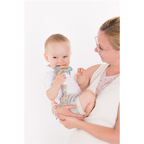 Zgrabny gryzak drewniano silikonowy FLOWER w kształcie kwiatka, który w stylowy sposób łączy drewno bukowe i silikon 100% BPA free . Drewniano silikonowy kwiatek o różnych fakturach zachęci maluszka do intensywnego używania i zabawy.Silikonowe brzegi posiadają małe wypustki, które pomogą w masowaniu dziąseł malucha. Gryzak nadaje się do schłodzenia w lodówce bądź zamrażalce, dzięki czemu przyniesie natychmiastową ulgę obolałym dziąsłom. Zapakowany jest na ekologicznym kartoniku, który ładnie się prezentuje i sprawia, że gryzak idealnie nadaje się na prezent.