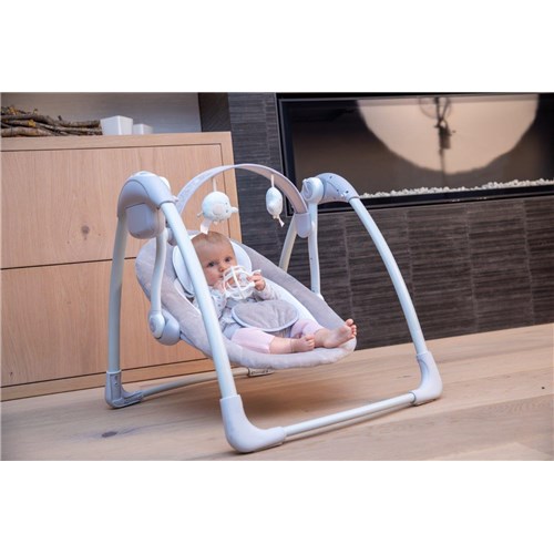 Swing działa na zasilanie sieciowe lub bateryjne. Ma regulowane
