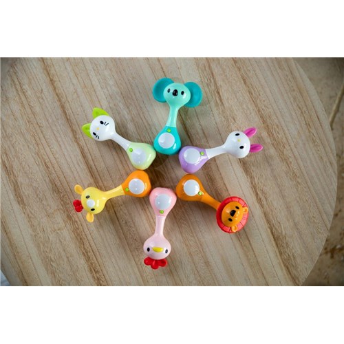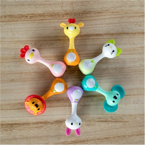 -Odtwarzane są wesołe melodie i odgłos grzechotania przy potrząsaniu