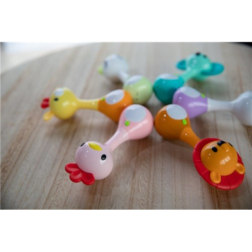 Różni się od innych typowych grzechotek, ponieważ zamiast grzechotania usłyszymy miłe melodie, a kilka trybów zabaw na długo zajmie niemowlaka.