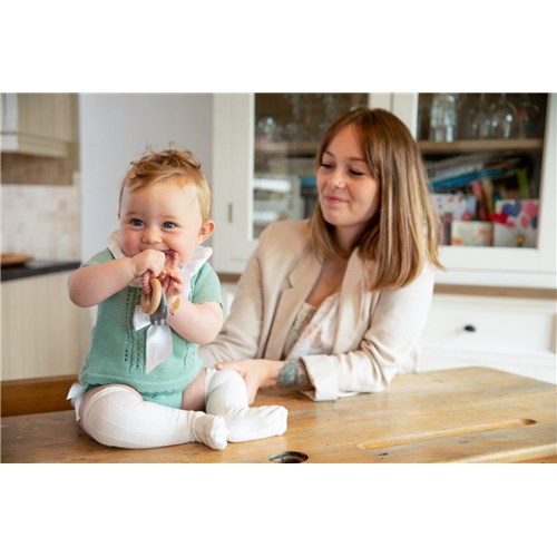 Wspaniały klasyk w nowej odsłonie, gryzak z silikonu i drewna bukowego to wyjątkowo lekka ulubiona zabawka niemowląt.