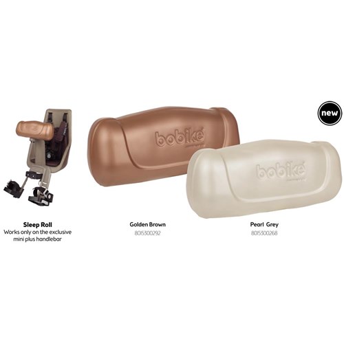 Dostępny jest w dwóch perłowych kolorach w odcieniu jasnej szarości i toffee, które pasują do wszystkich kolorów fotelików Bobike, jak również do aktualnych trendów rowerowych. Wałek do spania jest niezbędny dla rodzin, które wybierają się na dłuższe przejażdżki z maluchami w przednich fotelikach.