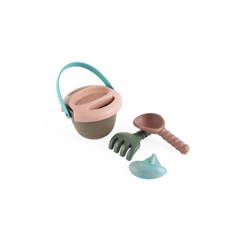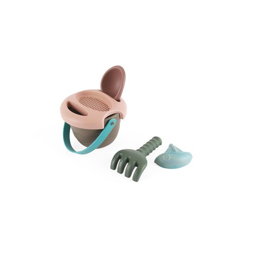 Ten ładny, mały zestaw kubełkowy nadaje się zarówno do zabawy w pojedynkę, jak i z innymi. Zabawa na zewnątrz w piaskownicy bądź na plaży wzmacnia rozwój sensoryczny dziecka. Maluch jest już gotowy na swój debiut w piaskownicy bądź plaży, a przede wszystkim w naturalnym środowisku na świeżym powietrzu! Zestaw zawiera wiaderko, łopatkę, grabki, piaskową foremkę z uroczym zwierzęcym motywem oraz sitko - które stanowi przykrycie wiaderka. Wszystkie części są w stonowanych, naturalnych kolorach.