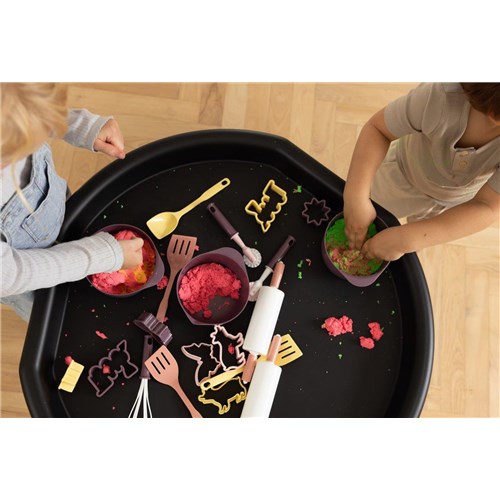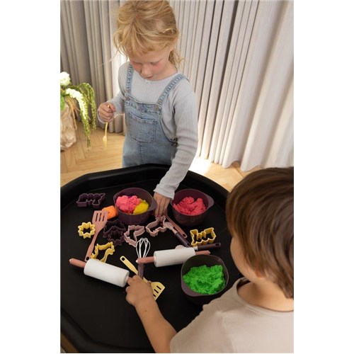 Pozwól dziecku zanurzyć się w świat magicznej zabawy sensorycznej z zestawem do pieczenia. Ten kolorowy zestaw zachęca do odkrywania przez dotyk, formowanie i kreatywne eksperymentowanie - w piaskownicy, z modeliną, ciastoliną lub przy prawdziwym wspólnym pieczeniu w kuchni. Dzięki różnorodnym elementom dziecko może tworzyć własne kształty, odtwarzać czynności dorosłych i eksperymentować z materiałami, co wspiera zmysł dotyku, koordynację ręka–oko oraz rozwój motoryki małej.