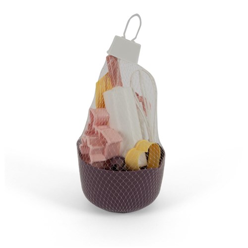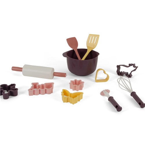 W komplecie znajduje się 12 elementów, w tym: wałek do ciasta, formy/foremki do ciastek, łopatka oraz pozostałe akcesoria do zabawy w pieczenie, które dziecko może wykorzystywać w wielu scenariuszach – samodzielnie lub w zabawie z rodzeństwem i rówieśnikami.