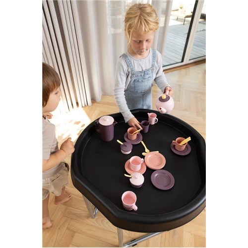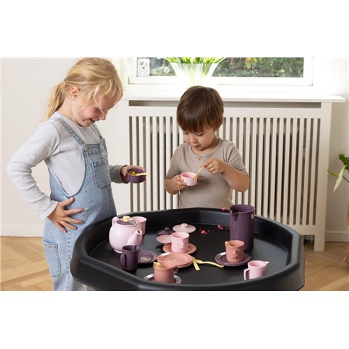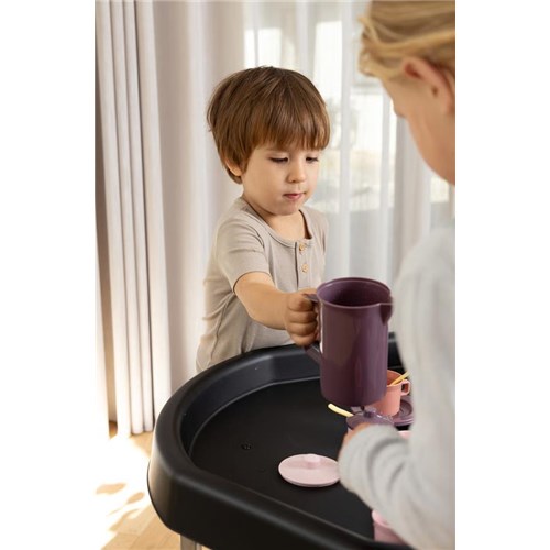 Uroczy zestaw do zabawy w kawiarnię, herbatkę i spotkania przy stole, zaprojektowany z myślą o dzieciach, które uwielbiają odgrywanie ról i wspólne zabawy. Pastelowa kolorystyka i klasyczna forma elementów sprawiają, że zestaw świetnie sprawdzi się zarówno w domu, jak i na zewnątrz – w ogrodzie, na tarasie czy podczas zabawy w „piknik”. W komplecie znajduje się wszystko, co potrzebne do stworzenia własnego „kawiarnianego” scenariusza: dzbanek do kawy z pokrywką, mlecznik, cukiernica z pokrywką oraz komplet dla czterech osób – 4 filiżanki, 4 spodeczki i 4 łyżeczki. Dzięki temu dziecko może serwować napoje pluszakom, rodzeństwu lub rodzicom, ucząc się przy tym dzielenia, komunikacji i budowania relacji w zabawie.