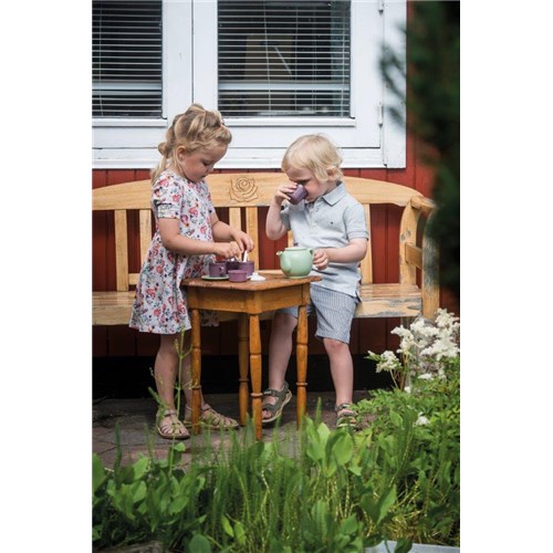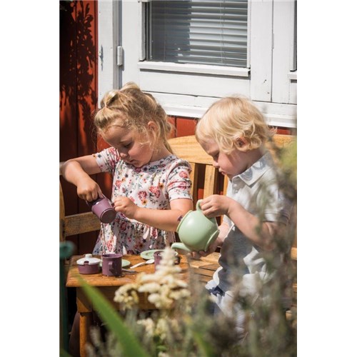 Zestaw do herbaty w najpiękniejszych kolorach natury. Dzięki niemu jest wiele okazji, aby zaprosić lalki, misie i przytulanki, dziadków i rodzeństwo na przytulne podwieczorki pod gołym niebem. Stół może być precyzyjnie nakryty dla 4 osób z talerzami, kubkami i łyżeczkami - gotowy do podania ciasta, soku lub czegokolwiek innego, co znajduje się w menu. Może na deser będą owoce i jagody z ogrodu? Wyobraźnia nie ma granic. Można skompletować kilka zestawów tej serii, które wspierają zabawę na świeżym powietrzu, naukę i odkrywanie. Wszechświat GREEN GARDEN zaprasza do zabawnego zaangażowania się w wiele codziennych obowiązków związanych z pielęgnacją ogródka, a pomiędzy zadaniami powinien oczywiście znaleźć się czas na przerwę w przytulnym zakątku ogrodu - może z filiżanką herbaty w ciepłym słońcu.