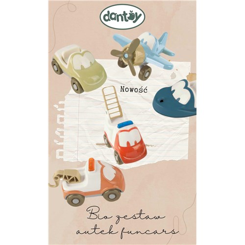FUNCARS w stonowanych, naturalnych kolorach to urocze samochodziki, łódka i
