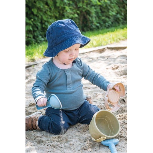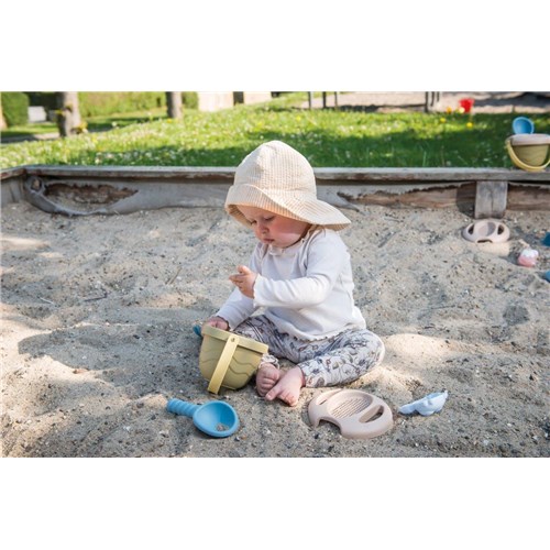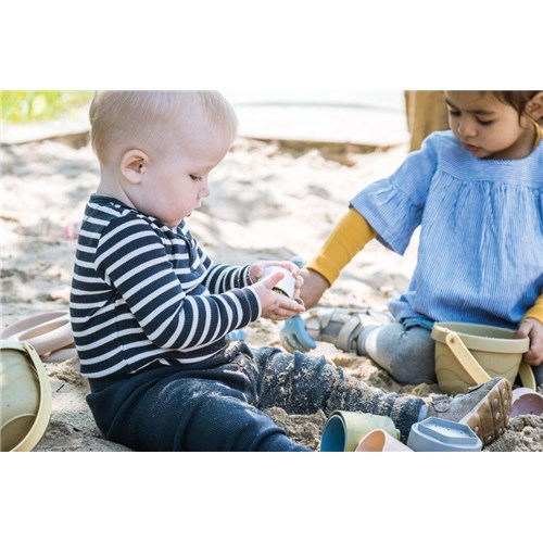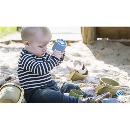 Ten ładny, mały zestaw kubełkowy nadaje się zarówno do zabawy w pojedynkę, jak i z innymi. Zabawa na zewnątrz w piaskownicy bądź na plaży wzmacnia rozwój sensoryczny dziecka. Maluch jest już gotowy na swój debiut w piaskownicy bądź plaży, a przede wszystkim w naturalnym środowisku na świeżym powietrzu! Zestaw zawiera wiaderko, łopatkę, grabki, piaskową foremkę z uroczym zwierzęcym motywem oraz sitko - które stanowi przykrycie wiaderka. Wszystkie części są w stonowanych, naturalnych kolorach. Zestaw do piasku BIO TINY produkowany jest w Danii z bioplastiku wykonanego z trzciny cukrowej, która w 100% jest zrównoważonym surowcem. To sprawia, że posiada certyfikat Nordic Swan Ecolabel. Produkty te są przyjazne dla środowiska i nie zawierają szkodliwych chemikaliów. Opakowania wykonane są z tektury z recyklingu.