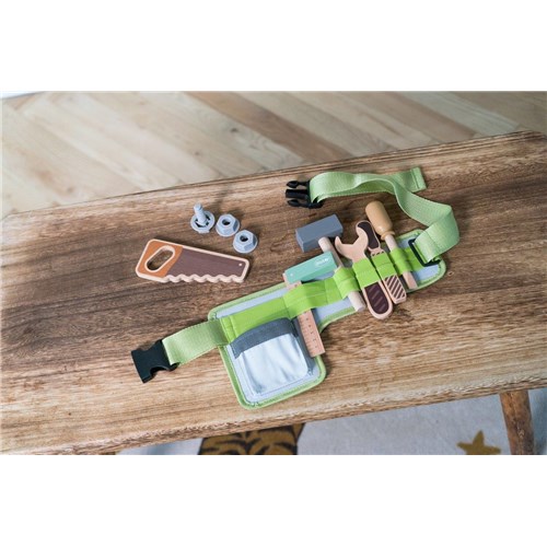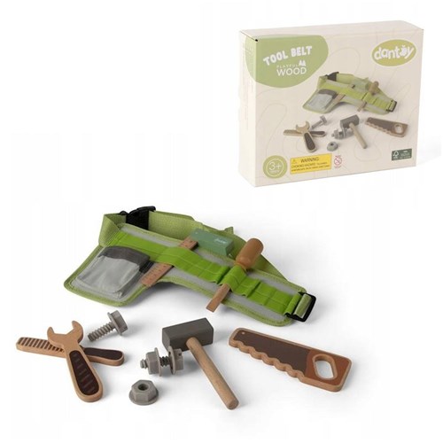 Pas z narzędziami z drewna DANTOY – Zestaw 11 części do zabawy w budowniczych