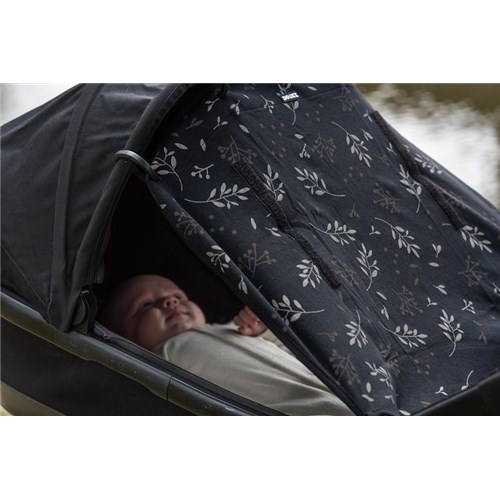 Unikalny i opatentowany system umożliwia regulację pokrowca na dowolnej wysokości za pomocą rzepów. Kiedy dziecko śpi, można go zwinąć do końca w dół, aby zapewnić cień i ciszę, kiedy się budzi, można go zwinąć do połowy lub do końca w górę, aby zapewnić kontakt wzrokowy.