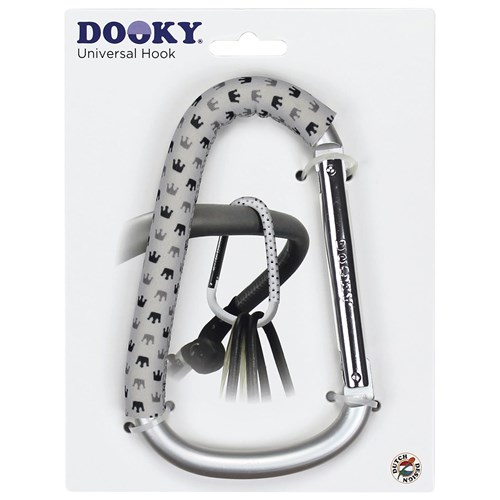 Uniwersalny haczyk Dooky to mocny haczyk z karabińczykiem, którym możesz przymocować torbę (torby) do rączki wózka, spacerówki buggy lub do wózka na zakupy. Haczyk jest super poręczny i wygodny. Modne wzory sprawiają, że wygląda świetnie. Niezbędna rzecz dla każdego rodzica, świetna na prezent!