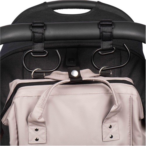 2: Zawsze sprawdzaj, czy na pałąku wózka nie ma zbyt dużego ciężaru, gdy na chwilę zdejmiesz z niego ręce. Jeśli ciężar na hakach stanie się zbyt duży, istnieje ryzyko, że wózek może się przewrócić!