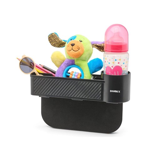 Wygodny dostęp do wszystkiego, co potrzebne w drodze – organizer pomieści butelkę, zabawkę, kredki, książkę czy okulary przeciwsłoneczne.