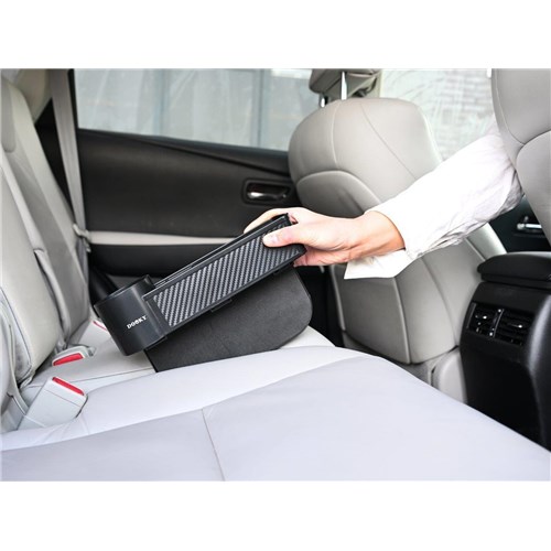 Łatwy montaż bez narzędzi – wystarczy wsunąć go między przednie fotele lub w szczelinę tylnej kanapy.