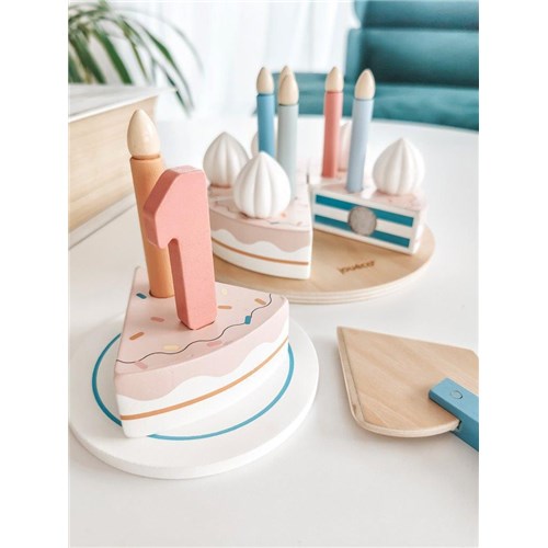80121 Drewniany tort urodzinowy i akcesoria