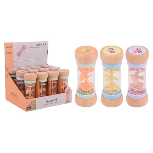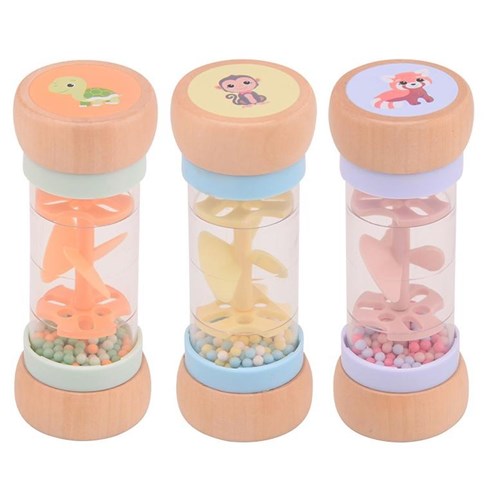Grzechotka deszczownica z kolekcji The Wildies Family jest specjalniezaprojektowana tak, aby mogła być trzymana przez najmłodsze dzieci i stymulujeich rozwój sensoryczny, gwarantuje zaciekawienie zabawką. Wystarczy potrząsnąć i nasłuchiwać kojących dźwięków małych kuleczek przemieszczających się z jednej strony deszczownicy na drugą. Kuleczki w różnych kolorach wpadają przez małe otwory w tubie i wprawiają śmigło w ruch, dając przyjemny deszczowy dźwięk. Zabawka doskonale wpływa na rozwój koordynacji ręka-oko
