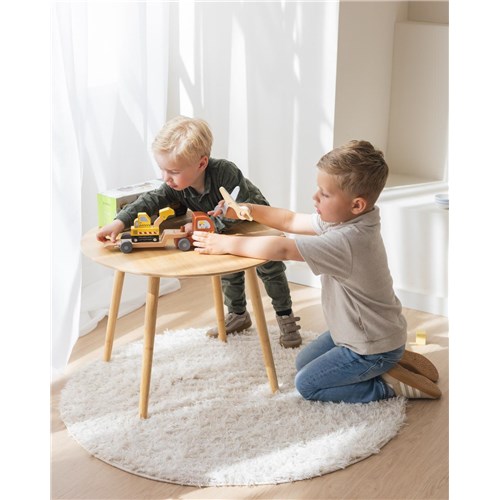 Auto budowlane z naczepą i koparką JOUECO to świetna zabawka dla dzieci od 18 m-ca życia. To idealna zabawka pobudzająca wyobraźnię malucha i rozwój motoryczny. To 3 niezależne elementy, które tworzą całość w zabawie lub można bawić się nimi osobno. Na odpinanej naczepie znajduje się koparka i maluch ma zadanie, aby ją przetransportować. Koparkę należy właściwie umieścić na naczepie i zablokować tylną klapę. Zabawka zagwarantuje dziecku fantastyczny czas i wiele możliwości zabawy. Stanowi świetny pomysł na prezent.