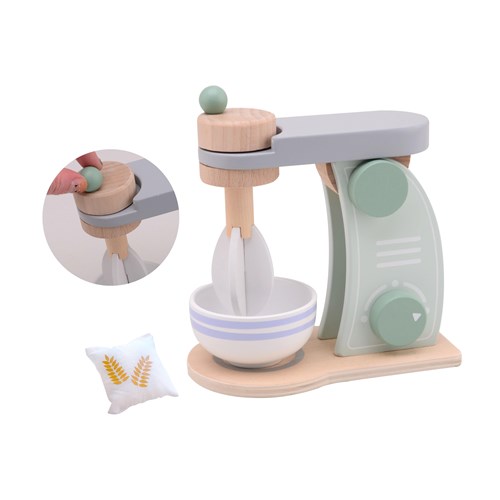 Ten pastelowy mikser kuchenny z miską jest idealny dla dzieci, aby rozpocząć przygodę z gotowaniem, pieczeniem i ze wspaniałym światem urządzeń kuchennych. Coraz więcej i bardzo różnych urządzeń znajduje się w kuchni i dlatego świat fantazji dziecięcej musi być na bieżąco. Piękny i nowoczesny wygląd miksera pomaga wyobraźni, a zabawka pozwala dziecku wykonywać dokładnie te same czynności, co rodzice. Pokrętła do trzepaczki i włącznik miksera sprawiają, że zabawka wygląda jak prawdziwe uprzędzenie kuchenne i zapewniają wiele opcji kreatywnej zabawy. W komplecie drewniana misa i miękka torba z mąką. Długa zabawa jest gwarantowana i piękny element do drewnianej kuchni tej marki - a w ofercie do skompletowania także blender, toster i eksres do kawy!