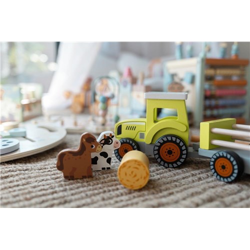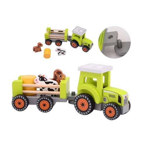 80164 Drewniany traktor z przyczepą i zwierzętami JOUECO