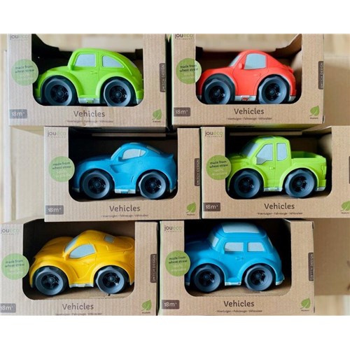 BIO Auta Joueco wykonanane są z BIOplastiku w najnowszej technologii z recyklingu słomy pszennej. Zostały zaprojektowane z myślą o zmniejszeniu emisji dwutlenku węgla i trosce o środowisko. Charakterystyczne dla zabawek z dodatkiem słomy pszennej są brązowe malutkie kropki. Auta są lekkie i bardzo dobrze wykonane, zwrotne i łatwo nimi kierować. Nie posiadają ostrych krawędzi, idealne dla małych rączek malucha.