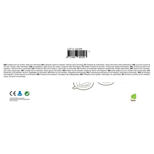 Zestaw został zaprojektowany z myślą o zmniejszeniu emisji dwutlenku węgla i trosce o środowisko. Charakterystyczne dla zabawek z dodatkiem słomy pszennej malutkie brązowe kropeczki na powierzchni produktu.