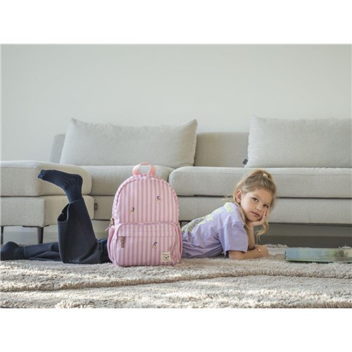 Ten uroczy różowy plecak z kolekcji Kidzroom Nostalgia to idealny towarzysz codziennych przygód i absolutny must-have dla każdego małego odkrywcy. Został starannie zaprojektowany tak, aby pasował do każdego stroju, a jego ponadczasowy pastelowy różowy kolor w delikatne paseczki w połączeniu z radosnym nadrukiem tj. haftem uroczych wisienek sprawia, że dzieci natychmiast się w nim zakochują. Plecak jest większy i łatwością mieści format A4.