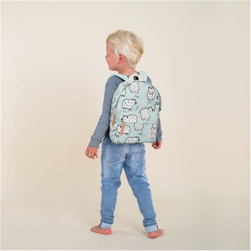 Czyż nie jest to uroczy plecak? Twoje dziecko będzie chciało go zabrać wszędzie. Ten pastelowy miętowy plecak z kolekcji Simple Things holenderskiej marki Kidzroom ma uroczy nadruk misiów wykonany jest z miękkich materiałów jakie pochodzą z poliestru z recyklingu (rPET - przetworzonych butelek plastikowych). Plecak ma poręczną przednią kieszeń z zamkiem błyskawicznym na mniejsze przedmioty. Duża komora główna ma zamek błyskawiczny i oferuje miejsce na pudełko na lunch lub dodatkowy zestaw ubrań. Poręczny, gdy dziecko zabiera plecak do przedszkola czy szkoły. Jasno brązowe wykończenia z eko skórki przy zamkach są solidne, a uchwyt na górze pozwala zabrać plecak ze sobą lub go powiesić. Plecak posiada również regulowane i wyściełane paski na ramiona oraz oraz wzmocniony tylny panel z wygodnej pianki dla dodatkowego komfortu noszenia. Wewnątrz znajduje się wygodny uchwyt na butelkę oraz etykieta, na której mały właściciel może napisać swoje imię. Plecak, z którego może być dumny!