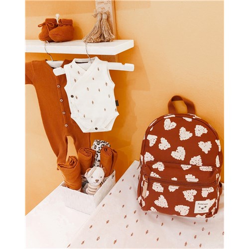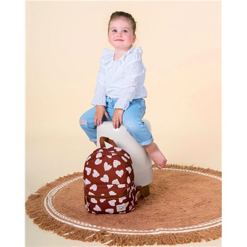 Czyż nie jest to uroczy plecak? Twoje dziecko będzie chciało go zabrać wszędzie. Starannie zaprojektowany, aby pasował do każdego stroju i tworzył dobry styl.Ten brązowy plecak z kolekcji Adore More ma uroczy nadruk w kształcie serduszek i wykonany jest z miękkich materiałów jakie pochodzą z poliestru z recyklingu (rPET). Plecak ma poręczną przednią kieszeń z zamkiem błyskawicznym na mniejsze przedmioty. Duża komora główna ma poręczny podwójny zamek błyskawiczny i oferuje miejsce na pudełko na lunch lub dodatkowy zestaw ubrań. Poręczny, gdy dziecko zabiera plecak do przedszkola czy szkoły. Brązowe wykończenia z eko skórki przy zamkach są solidne, a uchwyt na górze pozwala zabrać plecak ze sobą lub go powiesić. Plecak posiada również regulowane i wyściełane paski na ramiona oraz wzmocniony tylny panel z wygodnej pianki dla dodatkowego komfortu noszenia. Plecak, z którego może być dumny!