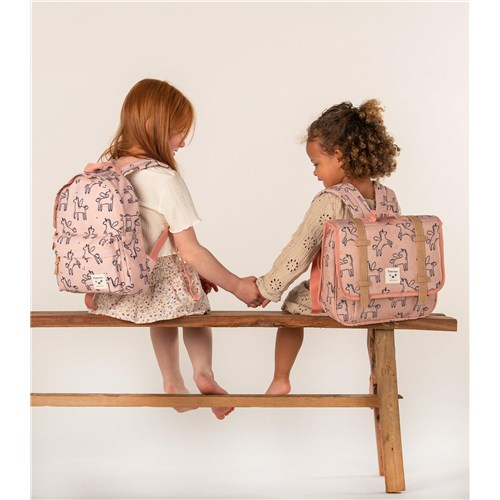 Czyż nie jest to uroczy tornister plecak w wyjątkowo eleganckim stylu? Tornister plecak marki Kidzroom z kolekcji Secret Garden sprawi, że pójście do przedszkola/szkoły będzie dla dziecka prawdziwą przygodą. Tornister jest w różowym kolorze i ma nadruk z pięknymi jednorożcami na całej powierzchni. Ten niewielki tornister/plecak ma dużą komorę główną (zmieści zeszyt A4) i jest zamykany na zatrzaski. Pod klapą znajduje się przednia kieszeń na drobne przedmioty. Można w niej łatwo przechowywać przybory szkolne, takie jak długopisy i ołówki. Posiada również regulowane i wyściełane paski na ramiona oraz wzmocniony tylny panel z wygodnej pianki dla dodatkowego komfortu noszenia, uchwyt na górze pozwala zabrać plecak ze sobą lub go powiesić. Dodatkowo jest wyściełany od wewnątrz, co zapewnia mu wysoką jakość i dłuższą żywotność, a elegankie paski w eko skórki nadają mu wyjątlowego charakteru.