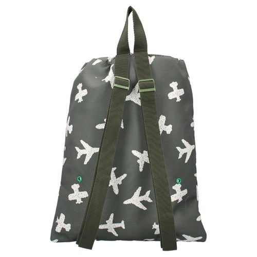Niesamowity i wytrzymały worek gimnastyczny z funkcją plecaka marki Kidzroom z kolekcji Adore More. Ten worek jest idealny do zabrania na gimnastykę lub lekcje pływania, a także do zapakowani kapci do przedszkola. Ma odcień khaki army i nadruk z samolotami na całej powierzchni. Worek ma zapięcie na sznurek i regulowane paski na ramiona - można go nosić jak plecak. Posiada również bardzo poręczną przednią kieszeń na suwak na małe przedmioty, takie jak klucze, gumki lub portfel. Co więcej, ten worek gimnastyczny jest wykonany w 100% z poliestru pochodzącego z recyklingu butek PET. To również sprawia, że ten produkt jest bardzo zrównoważony. Dzięki regulowanym paskom na ramię worek można dostosować do potrzeb każdego użytkownika. Tak więc nawet najmniejsze dzieci mogą cieszyć się super fajnym workiem/plecakiem.