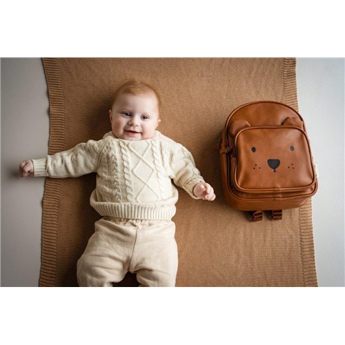 Słodki plecaczek na pierwsze wycieczki Twojego dziecka z kolekcji Beary Excited jest całkowicie trendy. Plecak ma brązowy kolor i jest wykonany ze ekoskóry PU. Przednia kieszeń ma kształt misia, a nawet urocze uszy. Plecak jest idealny dla maluchów i starszaków do przedszkola, na wakacyjny wyjazd lub podczas nocowania u babci i dziadka. Plecak ma przestronną komorę główną, w której można umieścić przybory szkolne, lunch box i kubek do picia. Paski na ramię mają regulowaną długość, a górny uchwyt ułatwia zawieszenie. Plecak posiada również wyściełane paski na ramiona oraz wzmocniony tylny panel z wygodnej pianki dla dodatkowego komfortu noszenia.