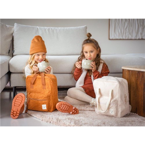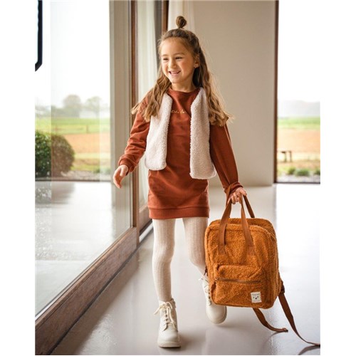 Ten uroczy plecak marki Kidzroom pochodzi z kolekcji Soft Whispers jest w całości wykonany z pluszowego materiału typu bukle w mięsiste, puszyste supełki wysokiej jakości i przypomina ulubionego misia. Twoje dziecko będzie chciało go zabrać wszędzie. Starannie zaprojektowany, aby pasował do każdego stroju. Plecak w odcieniu karmelowego brązu ma oryginalny kształt dosć pojemnej torby, przestronną komorę główną zamykaną na zamek błyskawiczny oraz poręczną przednią kieszeń na mniejsze przedmioty. Plecak oferuje miejsce na pudełko na lunch lub dodatkowy zestaw ubrań. Wugodny, gdy dziecko zabiera plecak z sobą, ma regulowane i wyściełane paski na ramiona oraz wzmocniony tylny panel z wygodnej pianki dla dodatkowego komfortu noszenia. Ma też etykietę z imieniem i numerem telefonu, dzięki czemu każdy wie, do kogo należy oraz podszewkę zapewniającą lepszą jakość i dłuższą żywotność. Uroczy plecak, z którego możesz być dumny! Pluszowy miły materiał typu bukle dodaje mu uroku i sprawia, że jest ulubionym plecakiem malucha!
