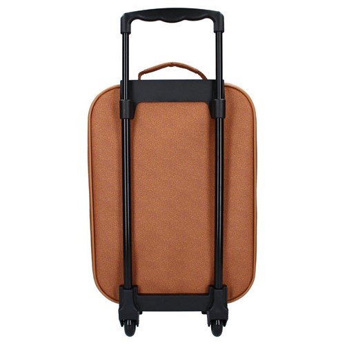 Podróżowanie staje się jeszcze większą przygodą dzięki walizce na kółkach marki Kidzroom z kolekcji "Sevilla Current Legend". Od teraz mały podróżnik może zabrać ze sobą swój własny sprzęt wakacyjny, a elegancką walizkę łatwo rozpoznasz po uroczym nadruku. Walizka na kółkach jest miniaturą walizki kabinowej, w kolorze brązowym i ma nadruk buźki dużego misia na całej powierzchni. Komora główna 41x30x14 cm oferuje wystarczająco dużo miejsca na strój kąpielowy, zabawki i krem do opalania, ale oprócz tego zmieszczą się w niej również niezbędne normalne zestawy ubrań i buty. Wnętrze walizki jest wzmocnione wśrodku, ścianki nie załamują się, a gumowe paski z klamrą pozwolą na zabezpieczenie bagażu przed przesuwaniem się, jest wykończona ładną podszewką. Podwójny zamek błyskawiczny umożliwia łatwy dostęp do niezbędnych przedmiotów. Poza tym na zewnętrznych bokach jest taśma w kolorze i wygodny uchwyt do noszenia. Rączka jest wysuwana w górę do 78 cm licząc od podłoża, a dwa kółka sprawiają, że walizkę łatwo się ciągnie. Walizka posiada również przednią kieszeń zamykaną na zamek błyskawiczny na mniejsze przedmioty, takie jak bielizna czy kosmetyki.