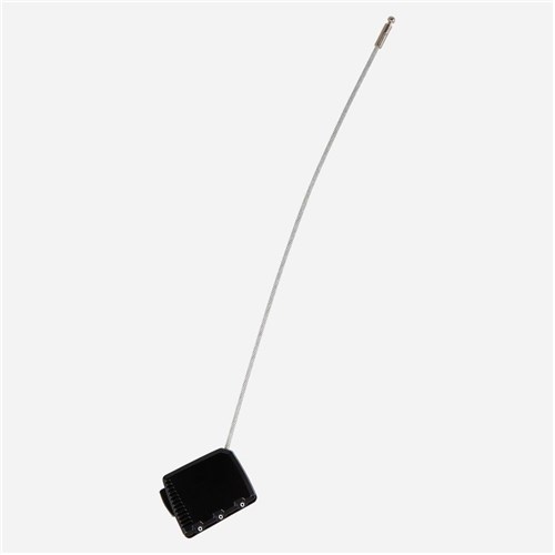 Blokadę należy przełożyć przez konstrukcję kosza oraz element montażowy, co uniemożliwia jego zdjęcie bez odblokowania kodu. Mechanizm szyfrowy eliminuje konieczność noszenia kluczy — użytkownik ustawia własną kombinację cyfr.