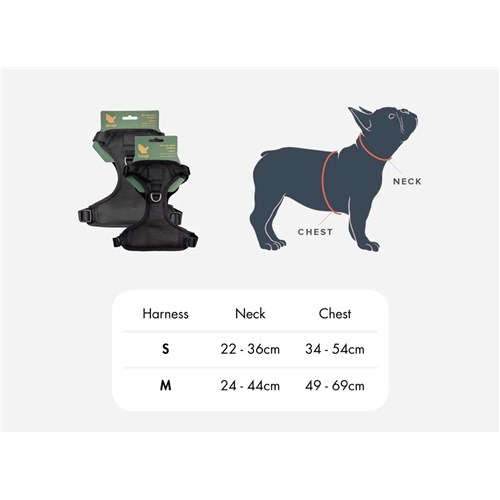 Rozmiary S i M dotyczą przede wszystkim dopasowania szelek, które są dołączone do zestawu i mają różne zakresy obwodów szyi i klatki piersiowej psa: