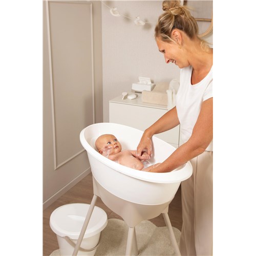 Zestaw zawiera wszystko, czego potrzebujesz do pielęgnacji i kąpieli maluszka – od ergonomicznej wanienki z odpływem i stojakiem, po praktyczne akcesoria, które ułatwiają każdy rytuał opieki nad dzieckiem.
