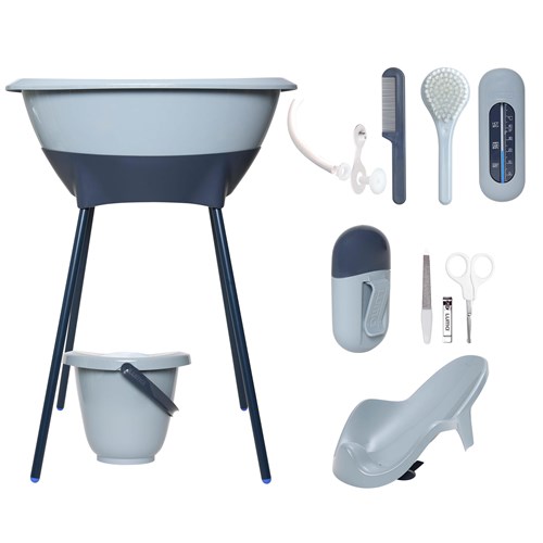 Luma to charakterystyczny design, nowoczesność i prostota,co jest wyraźnie widoczne w kolorach, grafice i stylu tych produktów. Wszystkie produkty Luma zostały zaprojektowane i wyprodukowane z najwyższą starannością w Holandii. Zestaw składa się z wanienki z rurką odpływową, stojaka, wiaderka na pieluszki, wkładki do wanienki, termometru do wody,zestawu do manicure orazszczoteczki i grzebyka, które są niezbędne do pielęgnacji niemowląt.