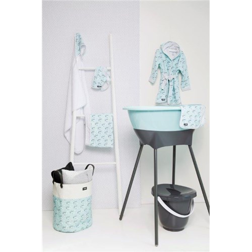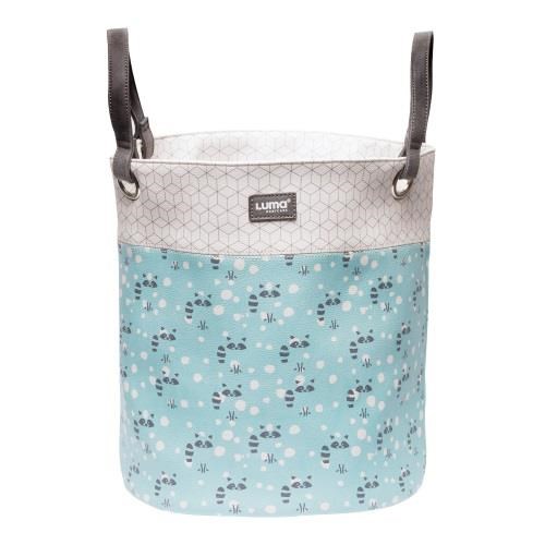 dzięki koszowi na zabawki LUMA kolorze miętowym, z motywem w małe szopy. Ten