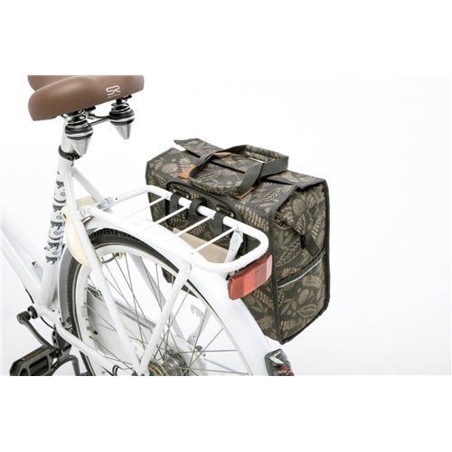 Komora główna sakwy jest bardzo obszerna i zapewnia dużo miejsca, dzięki czemu Lilly doskonale nadaje się na zakupy! Sakwa posiada z przodu dodatkową kieszeń zapinaną na suwak na torebkę lub portfel itp., po bokach torby znajdują się kolejne dwie kieszonki. Główna komora zamykana jest na suwak. Ta praktyczna sakwa mocowana jest do bagażnika za pomocą plastikowych haczyków New Looxs, dzięki czemu pasuje praktycznie do każdego rodzaju roweru, także elektrycznego. Podczas zdejmowania torby z roweru haczyki można schować w kieszonce, dzięki czemu nie przeszkadzają, a torba wygląda jak zwykła torba. Sakwa rowerowa jest solidna i dobrze zachowuje swój kształt dzięki plastikowym usztywniaczom na dnie i po bokach, co ułatwia przechowywanie rzeczy w torbie.