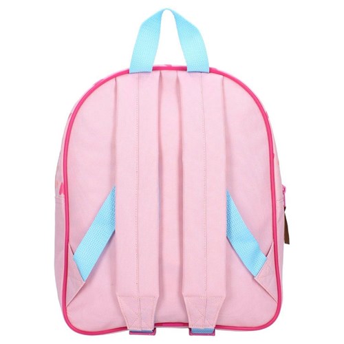 Przestronna komora główna jest wystarczająco duża na lunchbox, przybory szkolne czy ulubione zabawki. Maluch może spakować drobiazgi na nocleg u babci lub wakacyjny wyjazd oraz zabierać go do przedszkola. Dodatkowo, przestronna przednia kieszeń może służyć do przechowywania drobnych przedmiotów. Komory można otworzyć za pomocą zamków błyskawicznych. Regulowane i wyściełane miękko paski na ramiona są w kolorze różowym, a poręczne uszko na górze ułatwia zawieszenie plecaka.